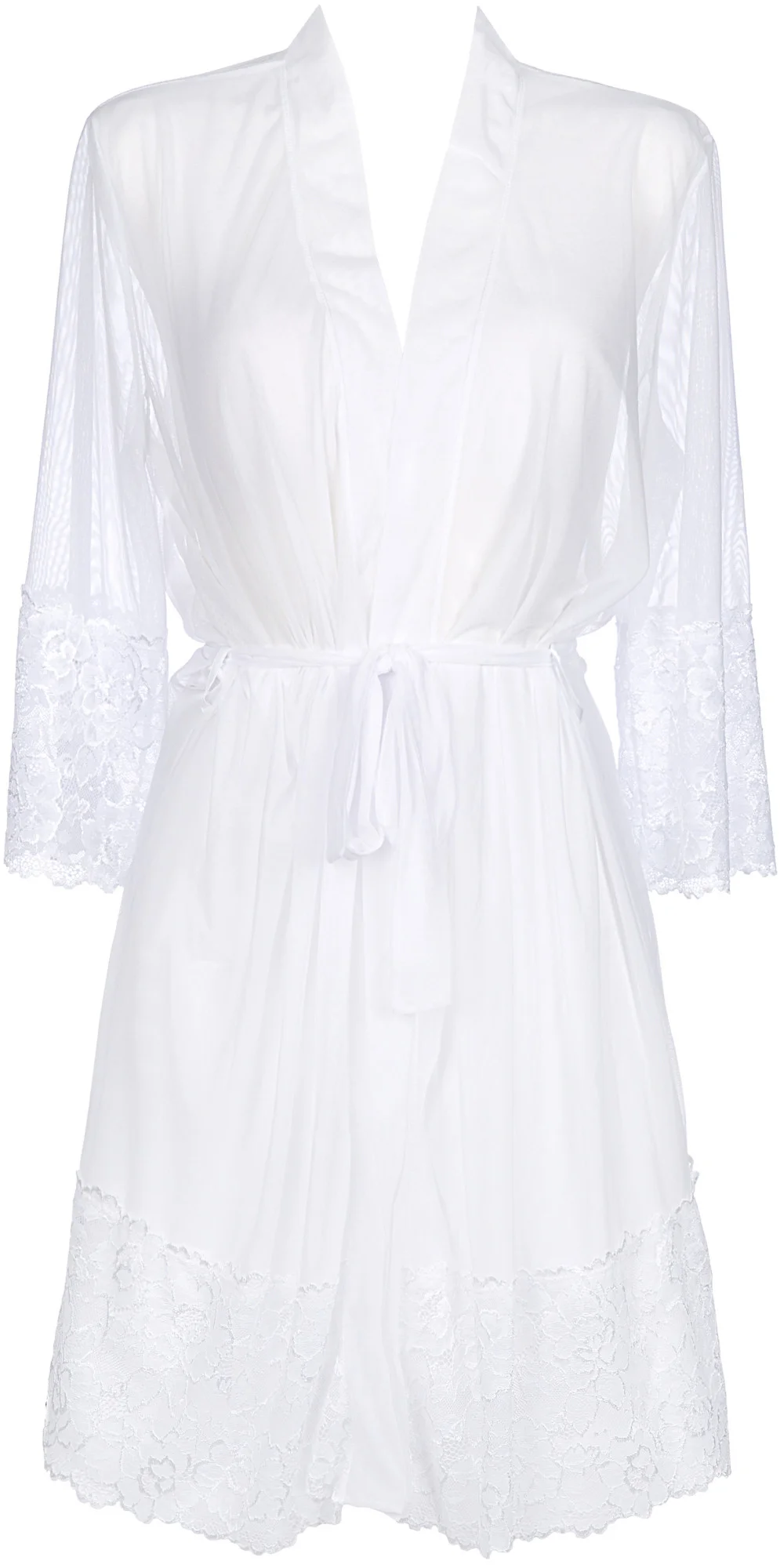 Exkluzívne biele negližé V-8850 je zaručeným spôsobom, ako začať a ukončiť deň v skvelej nálade. Je vyrobené z najkvalitnejších tkanín, pohladí vaše zmysly a pokožku, zahalí vás ako luxusná hmla a dodáva sa s opaskom. Zloženie tkaniny: polyamid 69 %, elastan 31 %